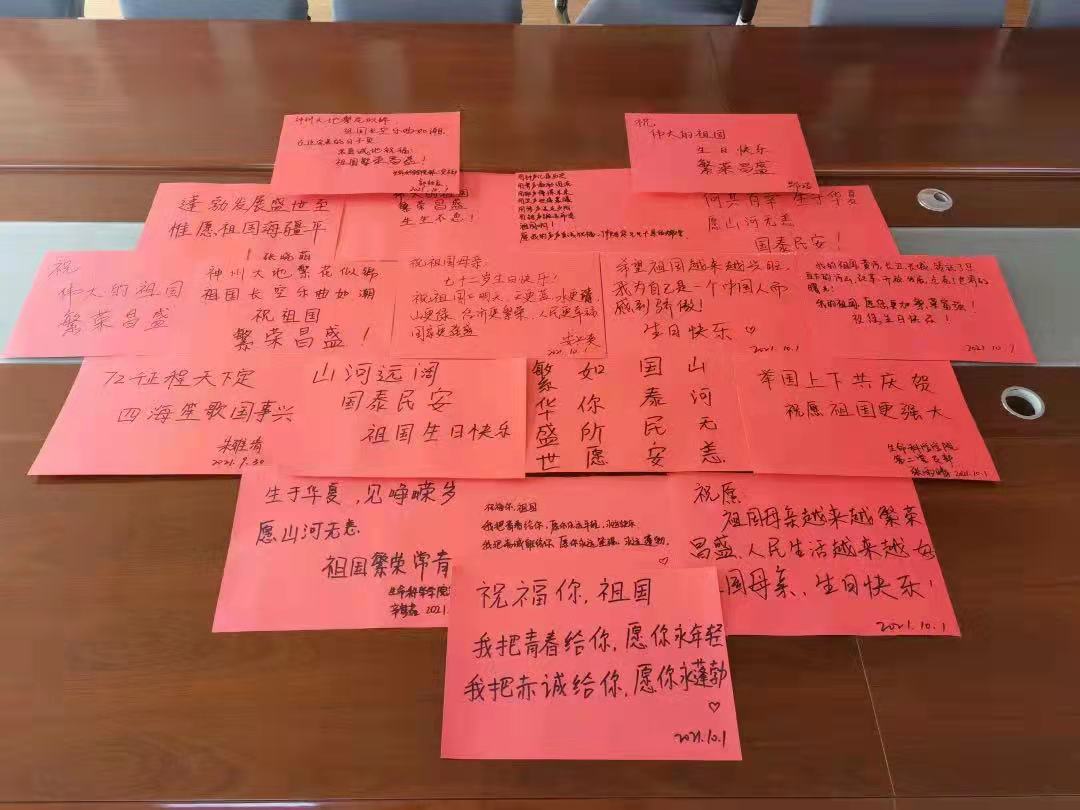 研究生第二党支部在组织委员的带领下,全体党员观看记录片,共同回顾祖国72年来曲折的发展史。新中国成立前夕及新中国成立后,无数先烈们不断尝试、不断探索,最终中国共产党带领中国人民找到一条适合中国发展的道路——中国特色社会主义道路。通过观看短片,同学们领悟到祖国取得如今举世瞩目的诸多成就都是一代又一代努力拼搏的中国人奋斗出来的。随后,各位同学在祖国华诞之际,亲手写下对祖国的祝福,共祝祖国的繁荣富强,生生不息!全体党员手举自己写下的祝福语,齐唱《义勇军进行曲》,表达自己对祖国的深厚感情。研究生第二党支部党员同志们表示,今日中国的成就来之不易,精神弥足珍贵。作为新时代青年党员,更应该着眼于自身为祖国的发展做出自己的贡献,要戒骄戒躁,认真参加党支部活动,积极为支部建设、学院发展建言献策,通过踏实的学习实现人生价值。我们每个人都要不断地提升自我,自觉做马克思主义的忠诚信奉者、坚定实践者,为国家的繁荣富强贡献自己的一份力量,同时也带动身边的人,祝福祖国的未来更加美好。