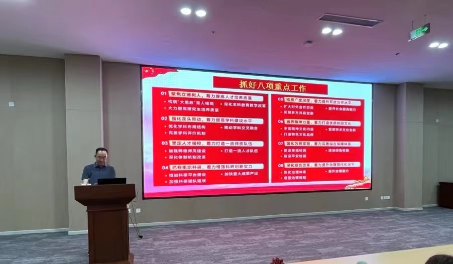 会上,王者旭对学校第五次党代会主题及相关精神进行了全面解读,带领全体教职工学习了校党委书记卢国强同志所作的《勇担使命 奋楫争先 为加快建成特色鲜明、开放创新、国内外具有重要影响力的高水平大学而团结奋斗》的工作报告。王者旭强调,贯彻落实学校第五次党代会精神是当前乃至今后一段时期的重点工作,全体教职工要以高度的政治责任感和使命感,学习宣传贯彻好党代会精神,紧紧围绕“一五八一”总体部署,发挥理工融合、产(科)教融合优势,强化学科群与专业群建设,持续提升学院的核心竞争力与综合实力。学院教职工纷纷表示,将不断提高自身的政治素养和业务能力,为学校和学院高质量发展贡献力量。