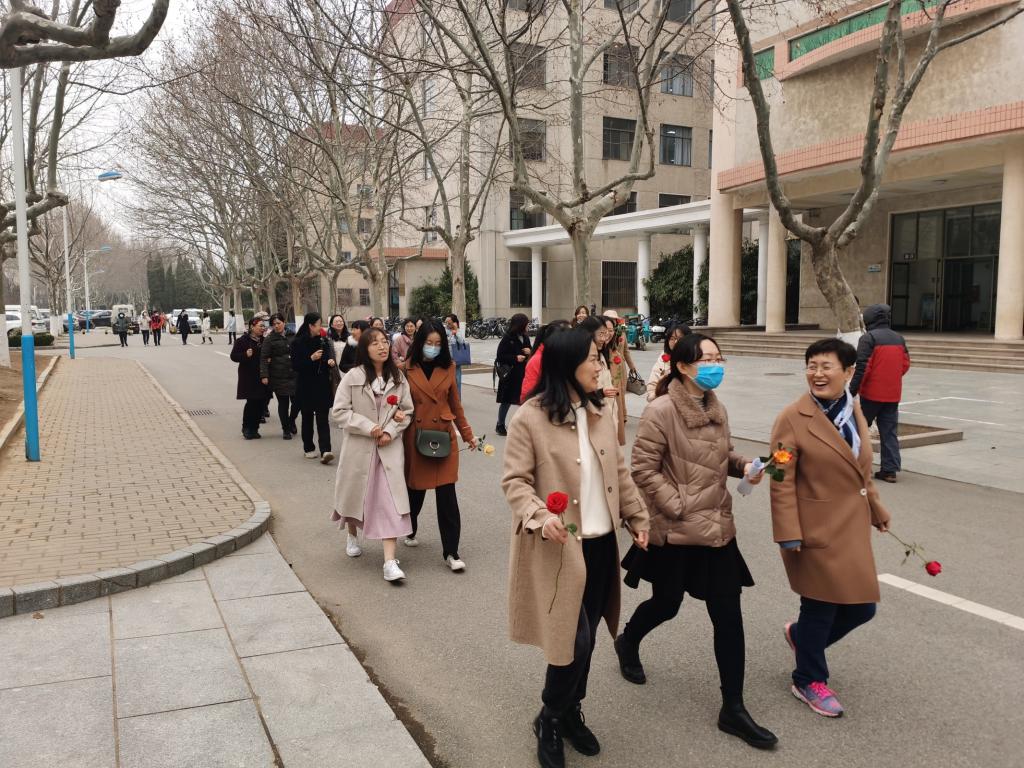 活动开始,女教师们在学院门口集合,院长邬旭然发表致辞,鼓励教职工积极参加体育锻炼,祝福老师们节日快乐。大家从院馆门口出发,环绕三元湖行走,在路途中,大家抛掉烦恼,释放压力,欢声笑语,健步而行。一边欣赏着三元湖的春景,呼吸着新鲜空气,一边享受着健步走带来的激情活力,享受着运动的魅力。女教职工们健步走的队伍形成了学校一道亮丽的风景线。