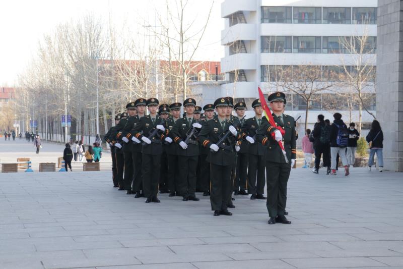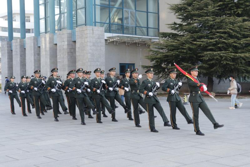 在国旗广场举行“一秩芳华·生生不息”十周年院庆升旗仪式。校长郭善利、副校长王强,学院现任历任院领导、辅导员及全院师生参加仪式。