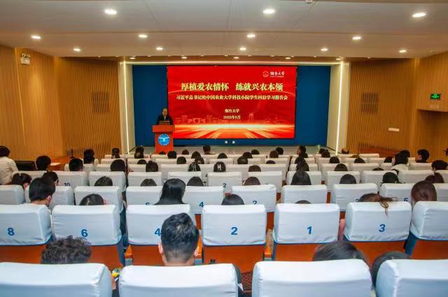 举办以“厚植爱农情怀,练就兴农本领”为主题的“习近平总书记给中国农业大学科技小院的学生回信”学习交流会,传达学习习近平总书记给中国农业大学科技小院的同学们的重要回信精神。党委常委、副校长郝曙光出席会议并讲话。