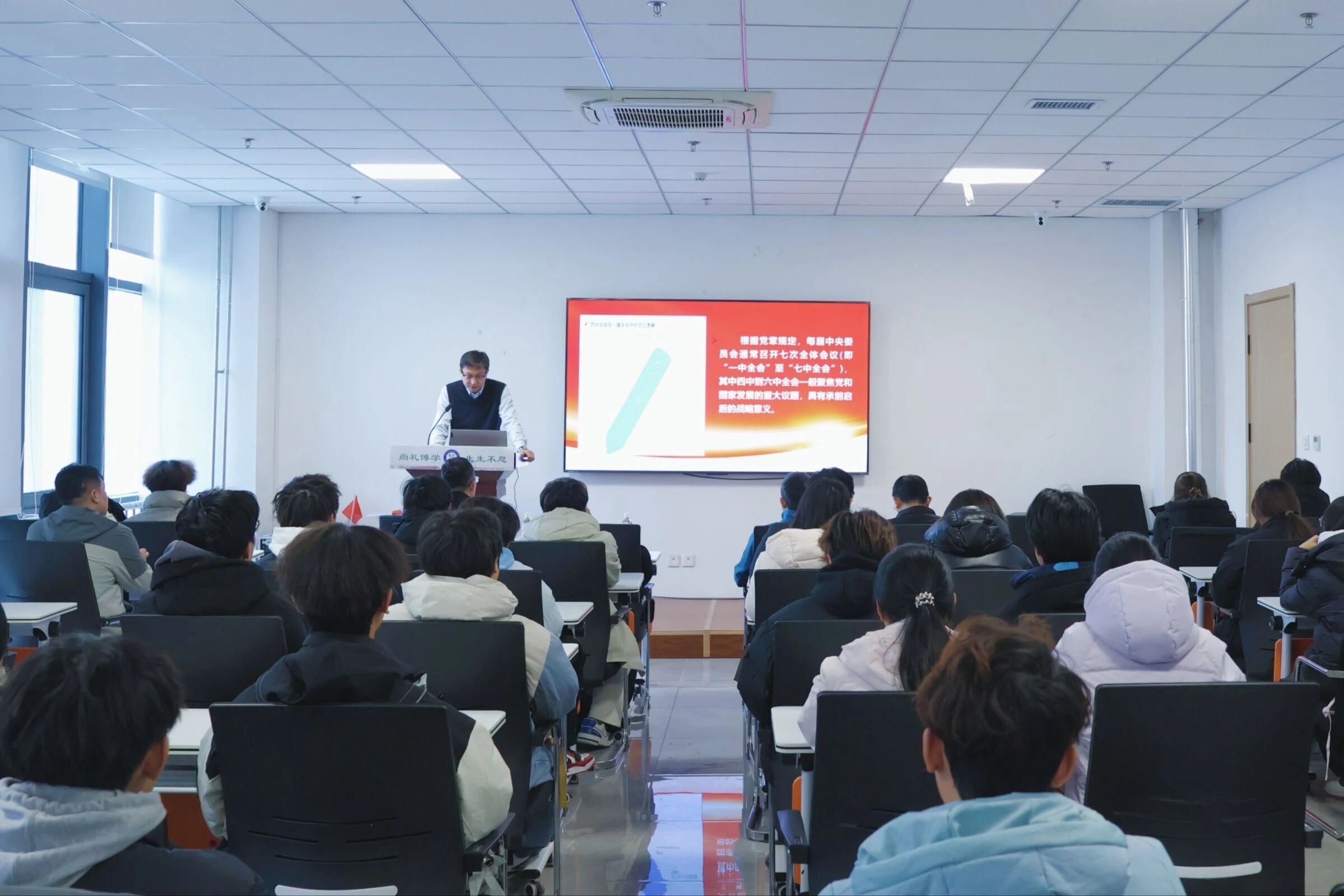 杨众晖围绕“十五五”时期经济社会发展的指导思想、六大重大原则和七大主要目标进行了详细阐释,并从九个方面全面解读了全会明确的战略任务和重大举措。同时,他结合烟台大学“十四五”时期事业发展取得的显著成效,梳理了学校“十五五”时期高质量发展的核心要点,强调要坚持和加强党的全面领导,凝聚起推进中国式现代化的磅礴力量。宣讲最后,杨众晖提出三点具体要求,鼓励全院师生以更加饱满的热情、更加昂扬的斗志、更加务实的作风,把二十届四中全会精神转化为干事创业的强大动力,奋力谱写学院高质量发展新篇章。