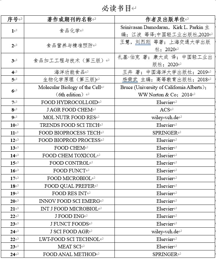 3、基本能力:掌握食品科学与工程学科基本的研究技术和方法,能较熟练地阅读英文资料,具备开展学术研究、学术交流和及时了解国际学术前沿发展动态的能力。通过系统的科研训练,能胜任相关专业的技术创新、系统管理等岗位任务需求,并能独立从事食品科学与工程领域的基础科学研究工作或技术开发工作。