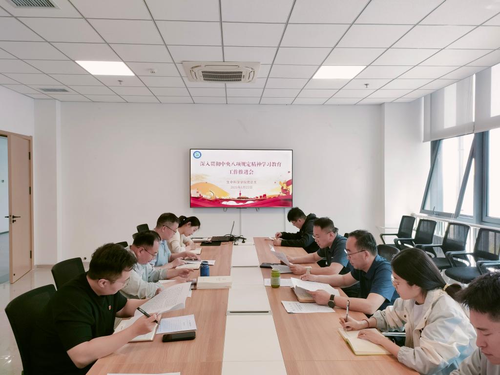 2025年5月22日,生命科学学院召开深入贯彻中央八项规定精神学习教育工作推进会。此次会议聚焦中央八项规定精神,开展专题学习研讨,系统总结阶段性学习教育成果,并对后续学习工作作出全面部署。各党支部书记到场参会,会议由党总支书记王者旭主持。